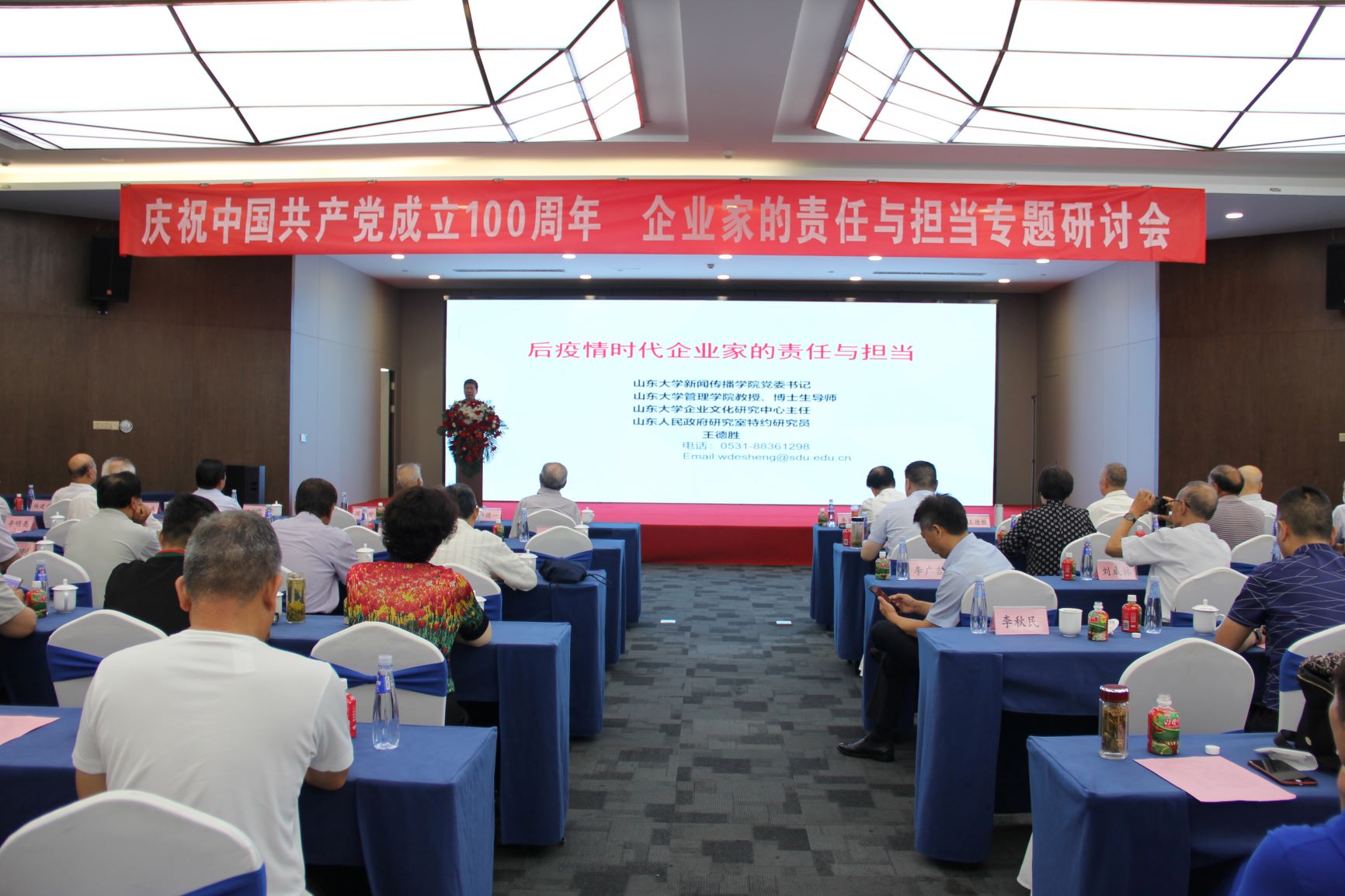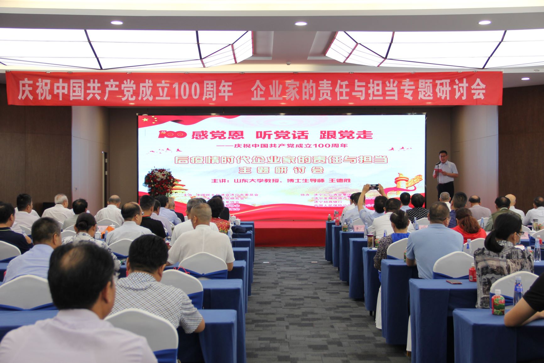 專題研討會上,濟寧市國際國內(nèi)公共關(guān)系協(xié)會會長、山東大學(xué)濟寧校友會理事長韓宇以《后疫情時代企業(yè)家的責(zé)任與擔(dān)當(dāng)》為主題進行了分享。重點分析了后疫情時代復(fù)雜多變的國際國內(nèi)形勢,剖析我國的應(yīng)對策略,強調(diào)了企業(yè)家在經(jīng)濟發(fā)展中的重要作用,明確了企業(yè)家的責(zé)任與擔(dān)當(dāng)。企業(yè)家在推動高質(zhì)量發(fā)展,深化供給側(cè)結(jié)構(gòu)性改革,推動改革創(chuàng)新,實現(xiàn)產(chǎn)業(yè)基礎(chǔ)高級化、產(chǎn)業(yè)鏈現(xiàn)代化,加快培育完整內(nèi)需體系等方面,肩負(fù)著重要的歷史責(zé)任!弘揚企業(yè)家精神,是企業(yè)家實現(xiàn)責(zé)任和擔(dān)當(dāng)?shù)暮诵呐c強大的動力!